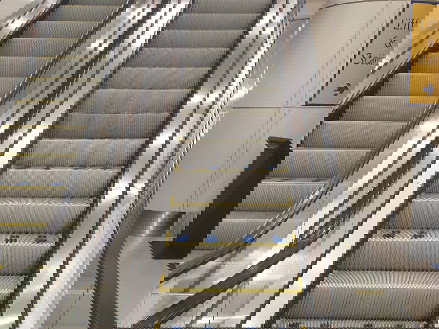 A full escalator step band deep clean and repainting of worn yellow safety demarcations along with additional blue safety feet at Queen Elizabeth Hospital